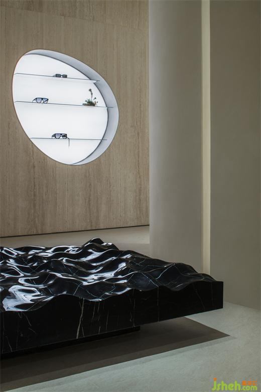 與試衣間一樣延續(xù)空間統(tǒng)一的設(shè)計(jì)手法,展廳設(shè)計(jì)通過(guò)材質(zhì)與光線的結(jié)合,為客人的試衣環(huán)節(jié)提供了舒適的場(chǎng)所,又能全面展示人與服裝的相襯。