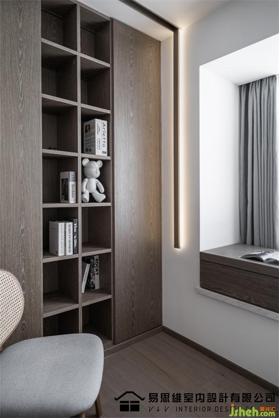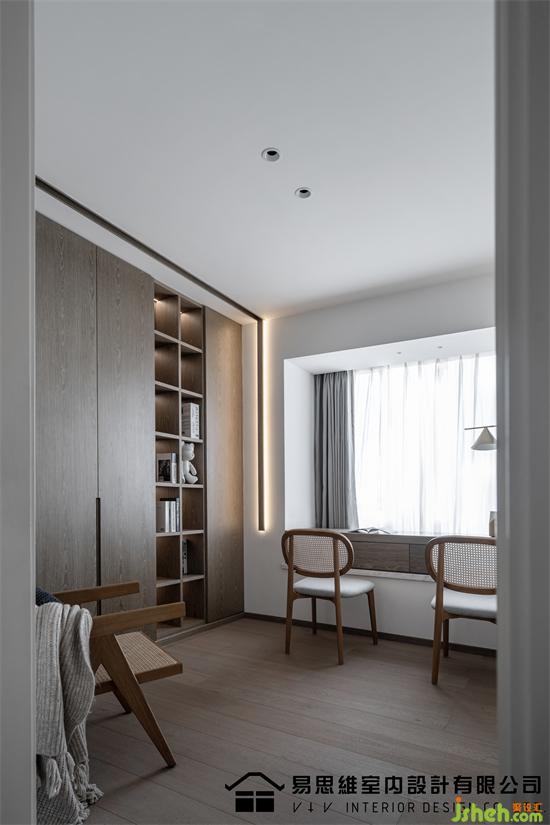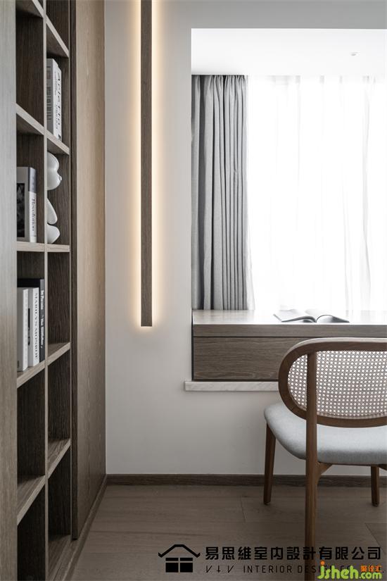 “寧靜致遠(yuǎn)”━━當(dāng)木頭這種材質(zhì)以不同的形態(tài)在同一空間出現(xiàn),不可避免的陷入視覺對比。在這里,暖灰調(diào)的木地板和墻面山紋的柜體都以大塊面呈現(xiàn),木制家具少而精致,空間的立體感得以強(qiáng)化,也使對比有了主次之分。家裝設(shè)計燈光利用凸與凹的契合,虛與實的互換,設(shè)計表達(dá)的巧妙而自然。