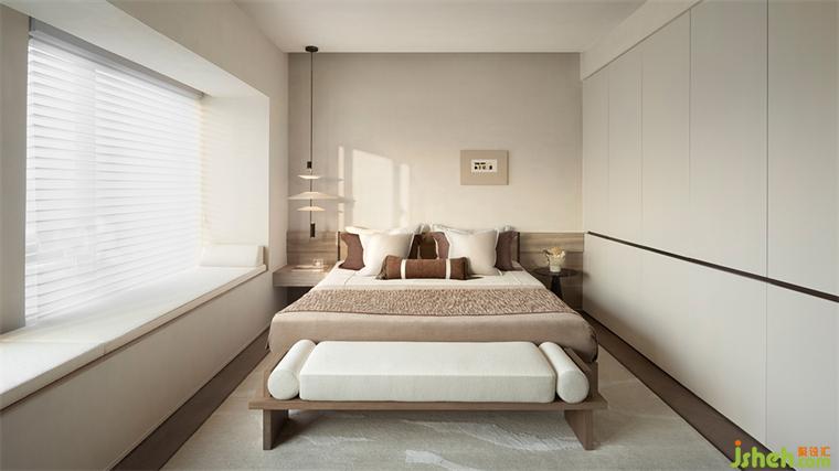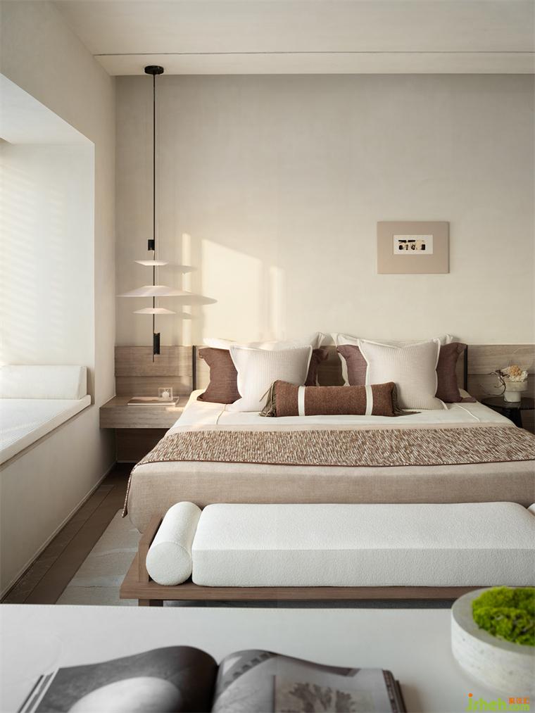 主臥的通長無邊景致讓身心行走時都帶著一股澄澈感。人處空間,忘記空間,起居坐臥,風起無痕,讓時間都緩慢了下來。