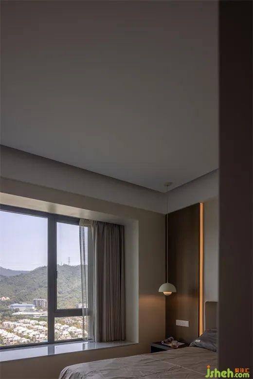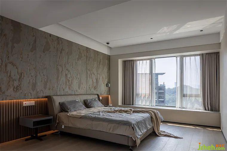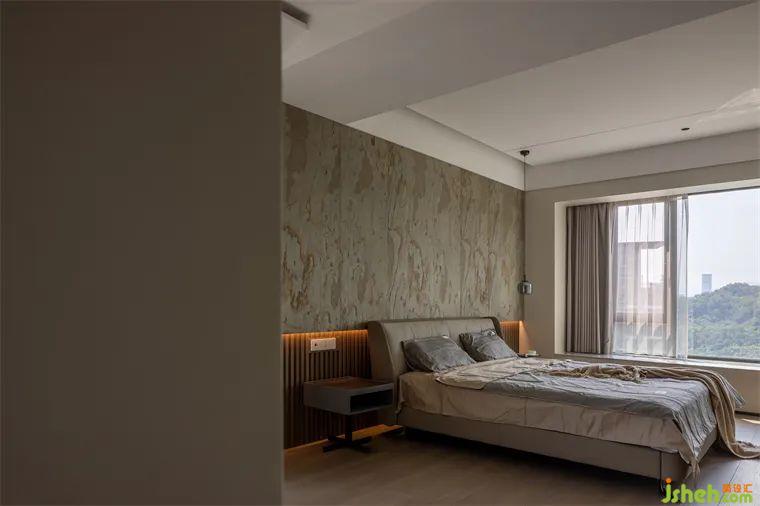 此外,臥室區(qū)域我們選用了一整面的巖板裝飾,搭配銀色金屬吊燈,既保持了臥室舒適溫馨的氛圍感,又點亮了臥室的整體風格,簡約而不失綺華,質(zhì)樸又不失精致。