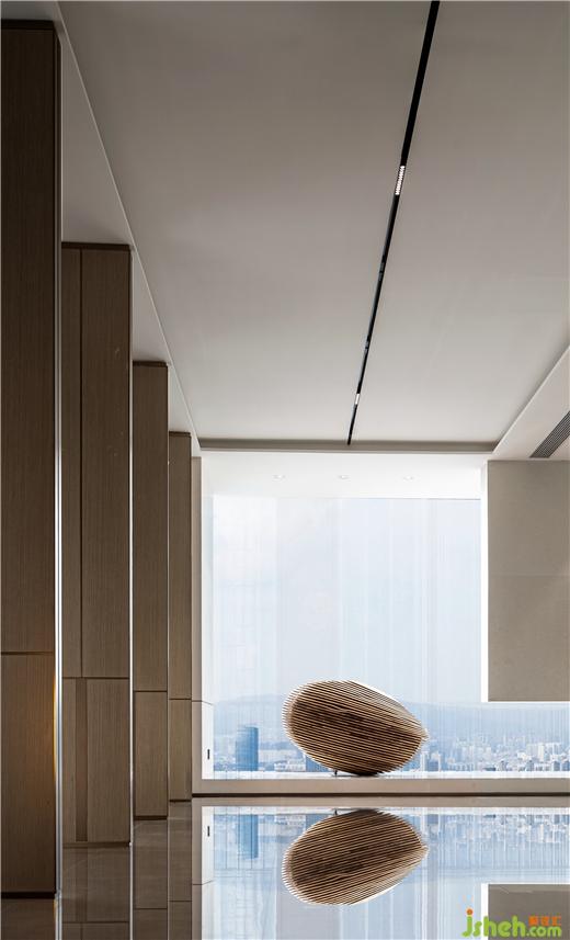 空間中的每一個(gè)造型,每一個(gè)轉(zhuǎn)角,都是故事的述說,是藝術(shù)的表達(dá)。西安簽約中心設(shè)計(jì)過廳的藝術(shù)擺件形成視覺焦點(diǎn),藝術(shù)玻璃的通透與極具序列的造型形成了鮮明的對(duì)比。它們既代表空間的遞進(jìn),更是時(shí)間的進(jìn)階,倒映包羅這空間中的往來萬象。同時(shí),隨著室內(nèi)外光影推移,使靜止的空間,擁有了藝術(shù)化的過渡。