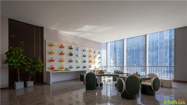 兒童區(qū)明朗的色彩勾勒出卡通化的語素,幾何座椅、五彩樂高,西安簽約中心設(shè)計實現(xiàn)藝術(shù)與趣味的融合,營造出一個夢想天地。