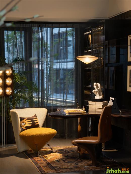 簡單的幾本書和擺件,多功能廳在黑白棕三種色調下,溫和雅致,像是時光里的一首詩,訴說著一種生活的自在從容。