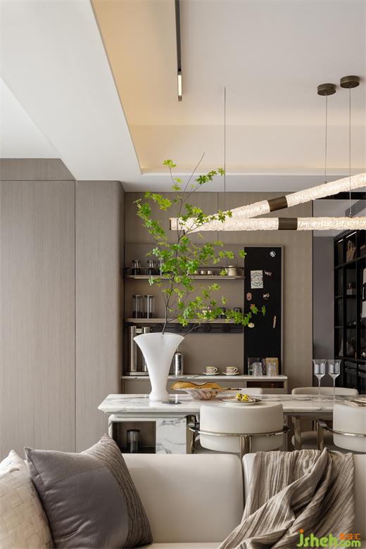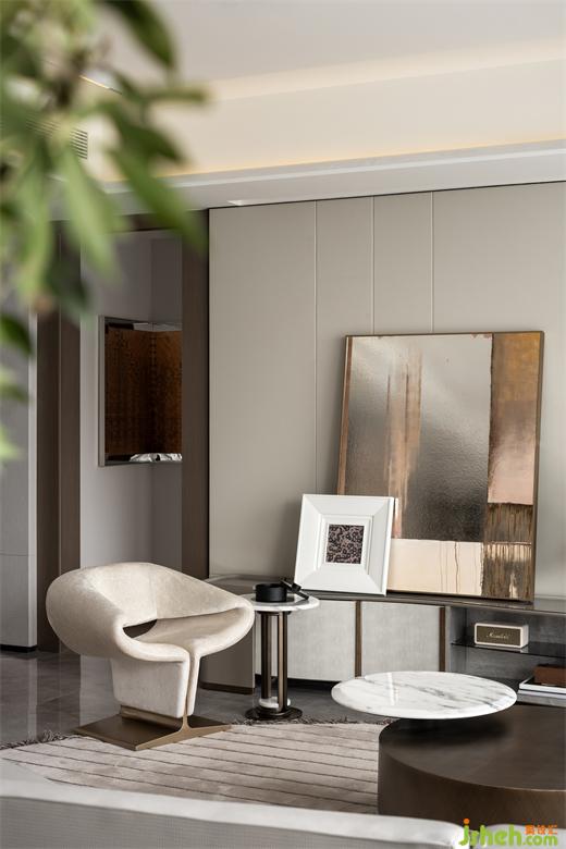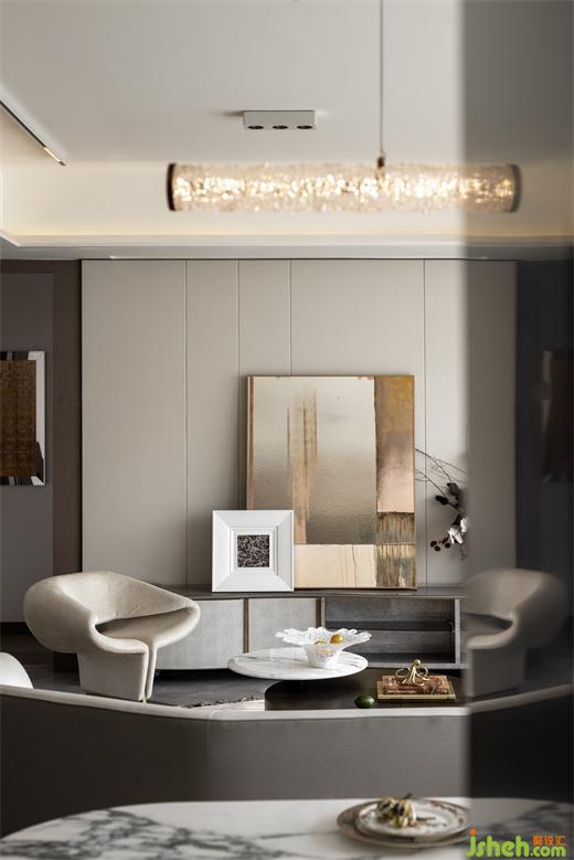 客廳是以一種溫暖而精致的方式,實現(xiàn)空間布局與使用功能的完美融合。整體以溫潤質(zhì)感和灰白調(diào)為主。素樸的用色、純粹的材質(zhì),生活的美妙,盡在設(shè)計細微處,盡在雋永美學(xué)中。