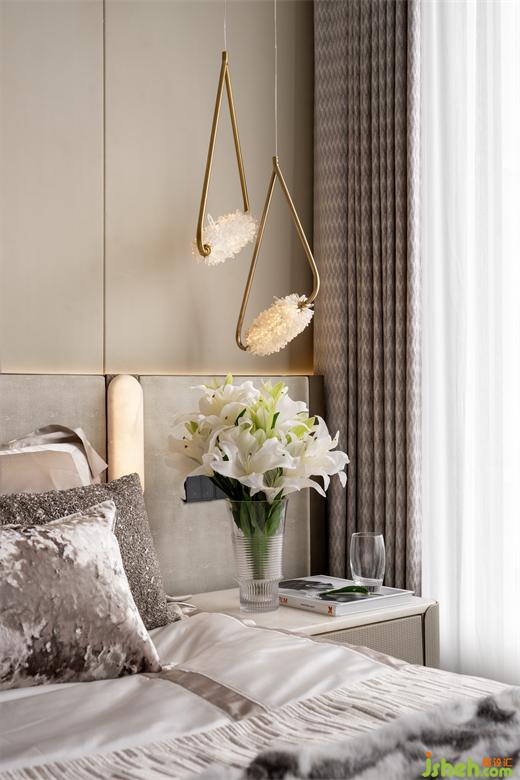 當(dāng)旋律逐漸放緩,空間便有了愈發(fā)柔和的呈現(xiàn)。主臥延續(xù)整體空間配色,線條的并置,光影的交織,細(xì)膩簡(jiǎn)約的飾面,與墻面上的裝飾畫相互呼應(yīng),讓空間呈現(xiàn)出統(tǒng)一的美感。