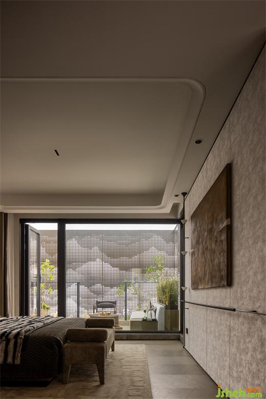 休憩的場所除了客廳外,還有主臥外的陽臺,它隔絕掉外界喧囂,是放松心情的小天地,樣板房設(shè)計(jì)潛藏著天地春秋和親友共歡。