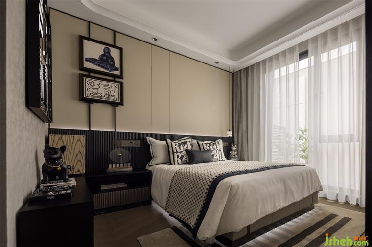 優(yōu)雅由心生,長輩房延續(xù)了咖色的醇厚基調(diào),以簡約的肌理勾勒出精致的細(xì)節(jié),塑造出放松、舒適的場域氣質(zhì)。