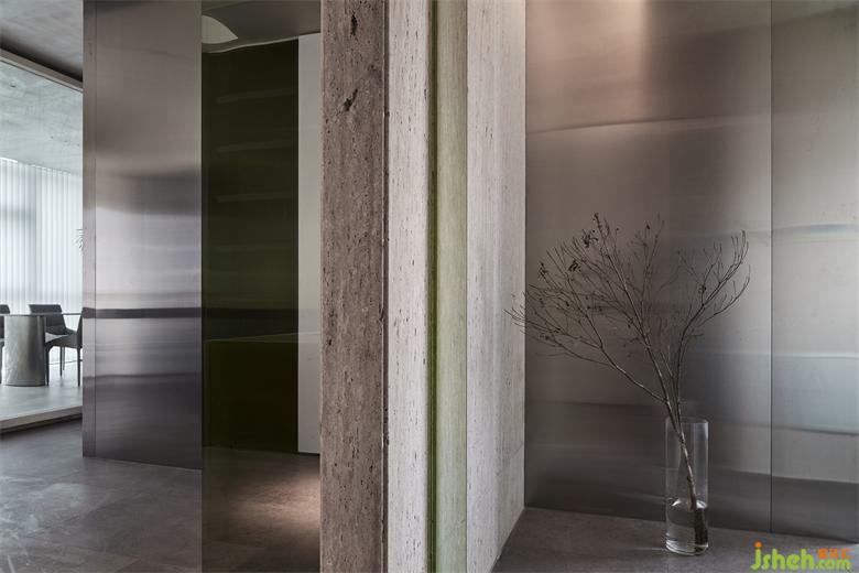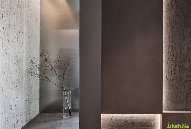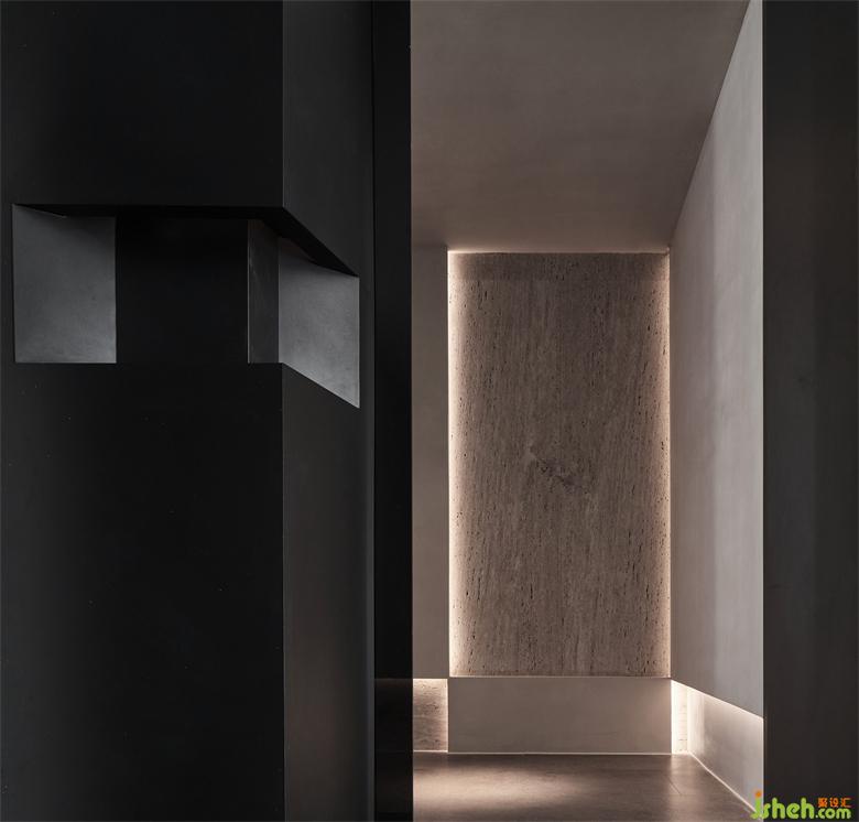 隱藏的光源烘托出材質(zhì)本身的質(zhì)感,光、影結(jié)構(gòu)本身的變化以及材質(zhì)的不同碰撞在這一玄關(guān)區(qū)域猶如巴赫的音符一樣層次分明層層堆疊 。