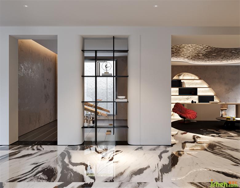 Spanish architect Gaudi said that straight lines belong to human beings, while curves belong to God. Indeed, the curve has built a perfect natural ecology. The basement porch water bar area has built a ritual sense of the end scene with an arc. Metal elements such as stainless steel partitions also add a sense of modernity to the space.