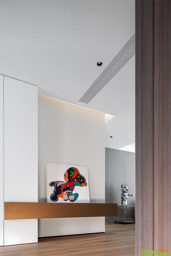 Invisible door forms are various, we also choose different invisible way in the space, through the top of the height and delicate grating is undoubtedly the best invisible collocation, the space is complete.
