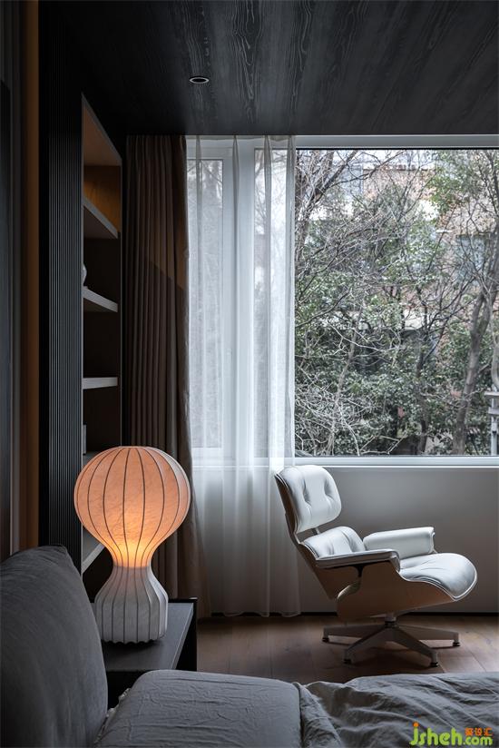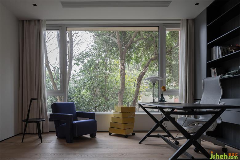景觀是最好的設(shè)計(jì)師,聰明的設(shè)計(jì)也要充分尊重景觀的構(gòu)成,我們通過一扇碩大的玻璃把室外粗大的樹枝變成我們設(shè)計(jì)構(gòu)成的一部分,季節(jié)輪轉(zhuǎn),黃綠更迭,不比任何多余繁雜的裝飾更有魅力嗎?
