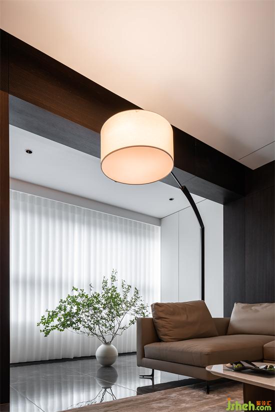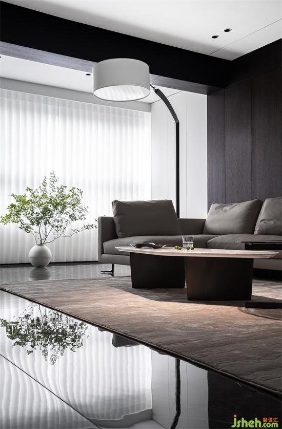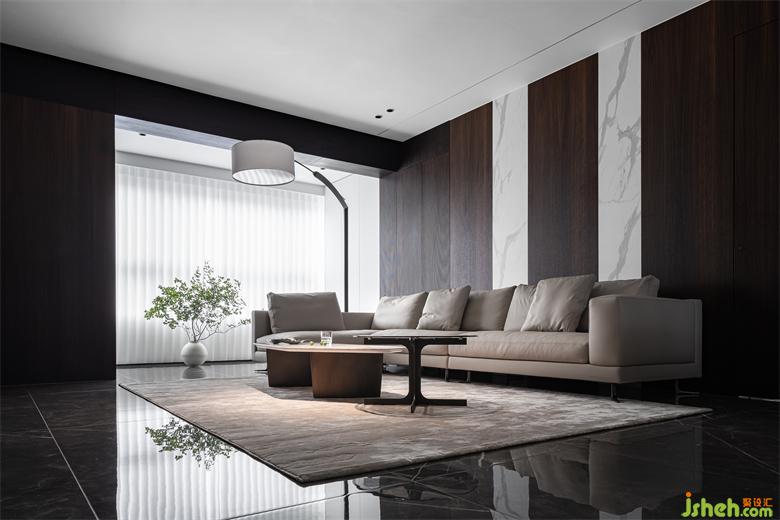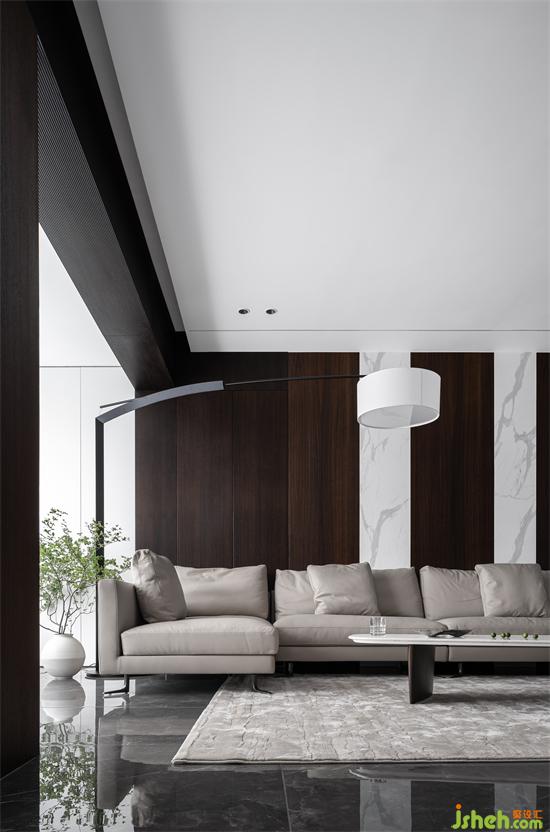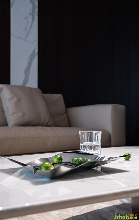 設(shè)計(jì)的都市感,黑白永遠(yuǎn)被追捧,極具質(zhì)感的煙熏橡木木皮把空間的基調(diào)做了鋪陳,山水樾瀾庭家裝設(shè)計(jì)白色的巖板點(diǎn)綴其中,無(wú)疑提升了材料的現(xiàn)代感,墻面延伸至頂面的線形燈光貫通了材料的鏈接關(guān)系。