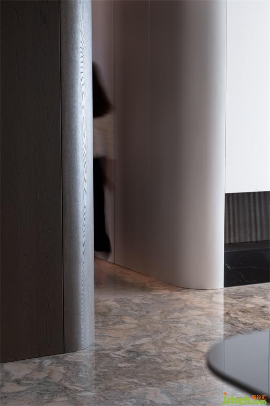 天然的木皮始終帶有獨(dú)特的質(zhì)感,而更加柔和的線條則賦予這種材質(zhì)更多的可能性。瀾山瀾豪宅裝修設(shè)計(jì)我們在保留原始地面不動的情況下,采用木皮來奠定整個空間的主基調(diào),以更多呼應(yīng)的弧形來弱化木皮的硬朗與現(xiàn)代感。