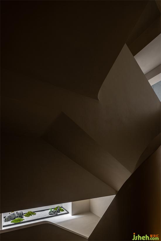 The diversity of the structure obeys the function of the space, the difference between inside and outside creates the step into the house, and coincidentally, the space above the top forms an arc-shaped stage area in the mezzanine. Natural daylight, in the quiet space to feel the power of nature, stone and green will bring the atmosphere of nature back to every inch of the building space.