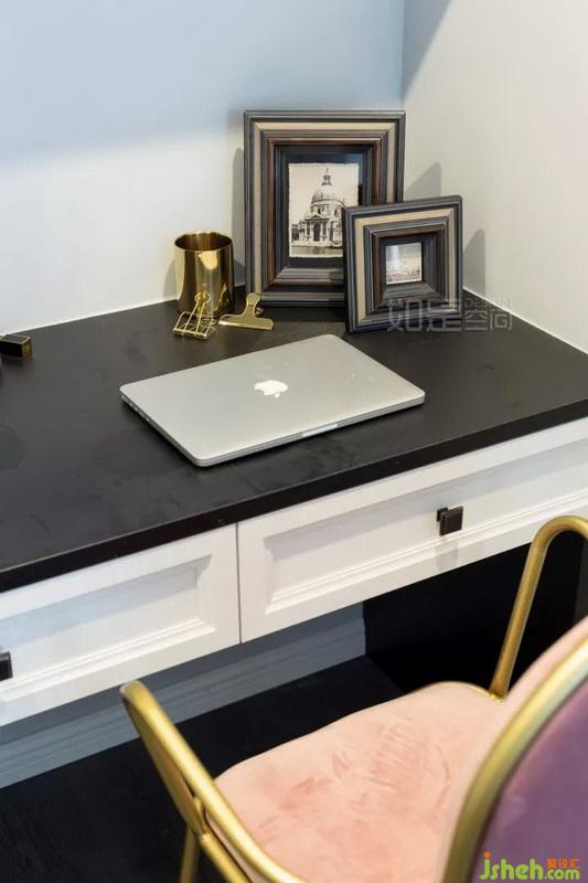 主臥未設(shè)置大尺碼衣柜(另利用小臥房做專門衣帽間),這為主臥帶來了更多的開闊適意感,同時(shí)也為小書桌與書柜贏得了空間。