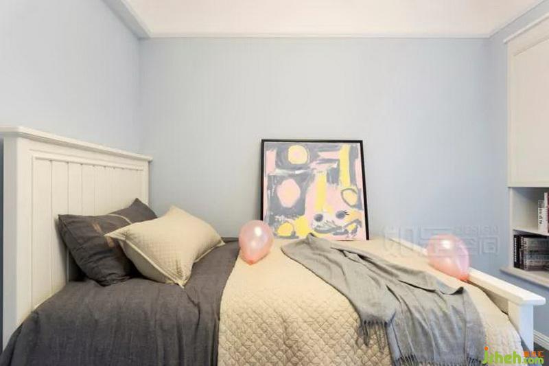 兒童房以淺藍(lán)色為主色,加入可愛粉色軟裝進(jìn)行點(diǎn)綴,充分利用較長(zhǎng)的飄窗增加小朋友讀書區(qū)