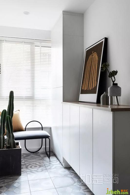 裝飾畫與綠植的加入,平添了生機(jī)和詩意,讓人歸家頓覺愉悅
