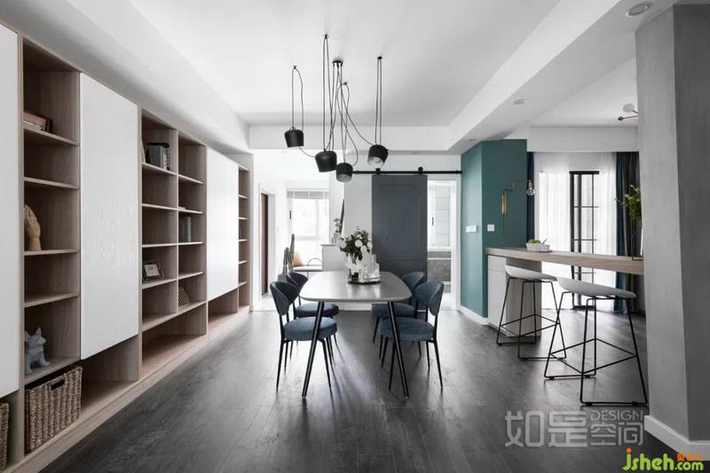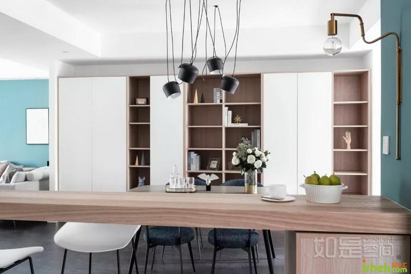 餐廳旁的過(guò)道很長(zhǎng),設(shè)計(jì)師在這里打造了一面局部開(kāi)放的的儲(chǔ)物柜,解決了長(zhǎng)期居住后的巨量收納需求,同時(shí)又顯得生動(dòng)活潑。兼顧了美觀及實(shí)用性。