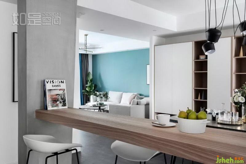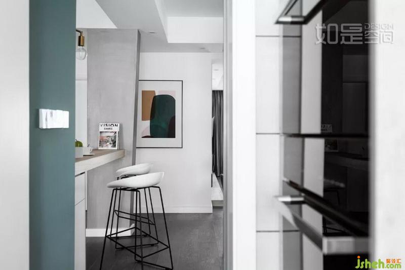書(shū)房雖為開(kāi)放式,但與餐廳之間用一個(gè)吧臺(tái)劃分開(kāi),不僅讓餐廳光線更好,也有空間增大的視覺(jué)效果