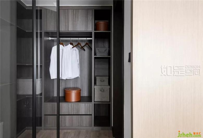 在衣柜與墻之間留了空隙,這樣,衣帽間的門可以完全推到左邊空隙里,瞬間成為開放式衣帽間。