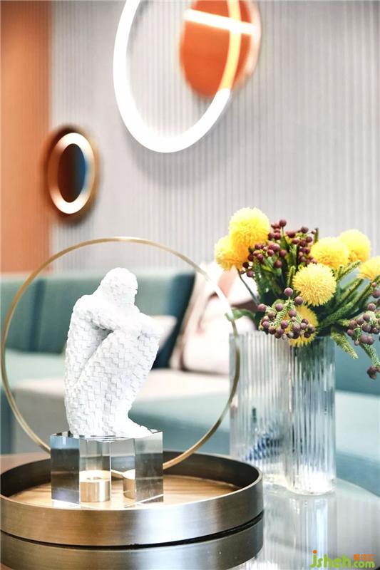 幾何形圖形的裝飾畫(huà),輕靈、藝術(shù),柔軟又溫和,通過(guò)溫柔的燈光與炫彩玻璃完美的交融,呈現(xiàn)出無(wú)與倫比的高級(jí)感。樣板房設(shè)計(jì)