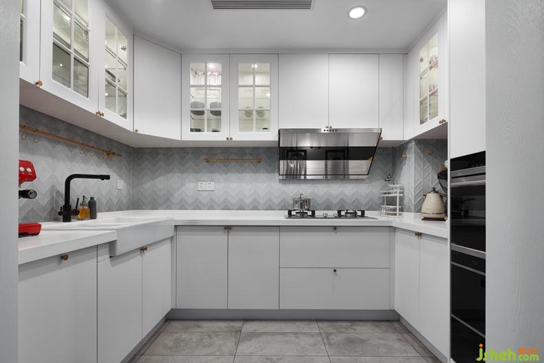 我們將原有不規(guī)則的廚房改成規(guī)整的U型,吊柜里加了氛圍燈光。再根據(jù)主人的烹飪習(xí)慣和做飯頻率,來(lái)選擇了敞開(kāi)式廚房,洗切炒流程順暢。冰箱外移,是讓備菜區(qū),裝盤(pán)區(qū),瀝水區(qū)更寬敞,使用起來(lái)更高效。室內(nèi)設(shè)計(jì)師