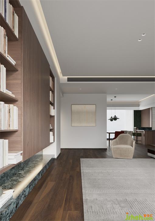 客廳電視柜設(shè)計(jì)成點(diǎn)電動(dòng)推門(mén),要看電視時(shí)只需要輕輕一按遙控,推門(mén)就會(huì)從兩邊自動(dòng)打開(kāi),平時(shí)在家,三米家居設(shè)計(jì)把電視藏起來(lái),秒變家庭“圖書(shū)館”。