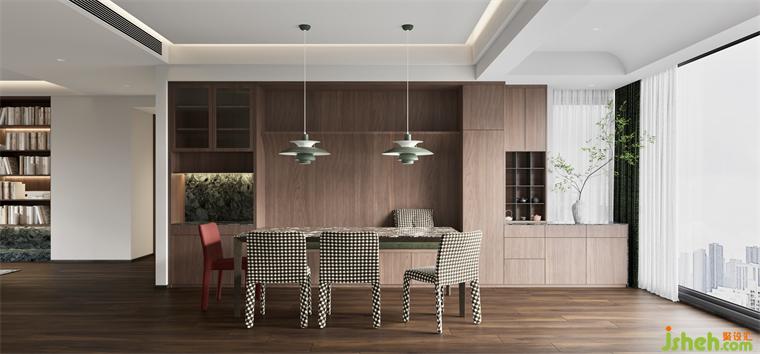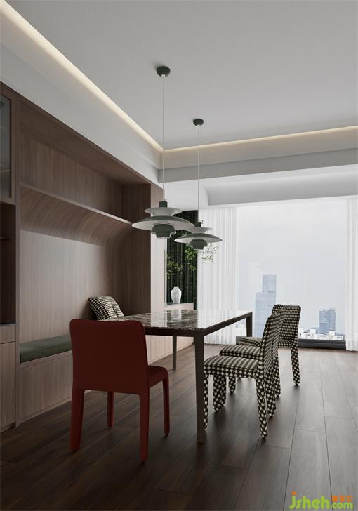 ①三米家居設(shè)計(jì)把餐廳陽(yáng)臺(tái)封窗處理,陽(yáng)臺(tái)融入到餐廳,餐廳瞬間寬敞許多,靠窗邊設(shè)置了一個(gè)喝茶區(qū),還在陽(yáng)臺(tái)增加了一個(gè)儲(chǔ)物間。
