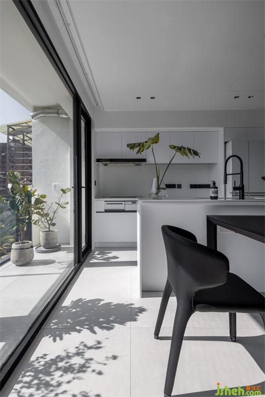 “此面原本無落地開窗,經重新設計后,讓日常浸沐在都市中難得的綠意里,拉近與自然光景的距離?!?