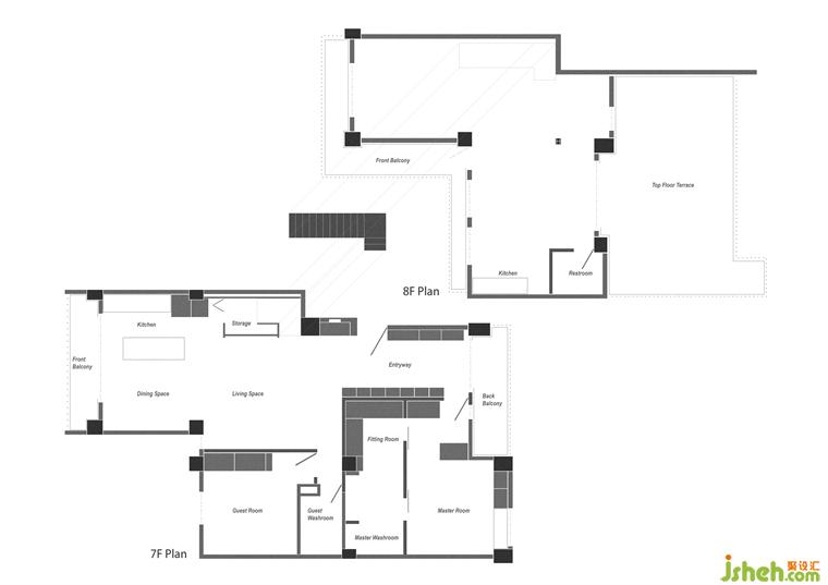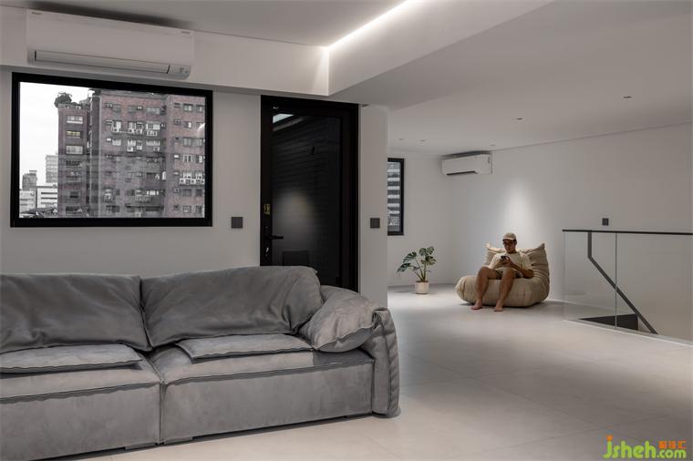 復(fù)式裝修設(shè)計(jì)得利于八樓充足的日光條件,在觀察陽(yáng)光照射?度及空氣對(duì)流狀態(tài)后,于北面露臺(tái)窗洞,劃設(shè)折疊氣密門,連接室內(nèi)外空間,亦有效放大視野。南面長(zhǎng)廊則規(guī)劃為辦公及瑜伽空間,當(dāng)需要深夜工作或進(jìn)行瑜伽冥想時(shí),得以僻一隅靜謐,與七樓的生活機(jī)能區(qū)隔開來(lái)。