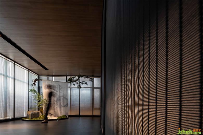 金屬簾、原木、原石、足夠的室內(nèi)留白和浮光掠影,讓空間生出類似侘寂之美,但此間疏朗曠達,絕無殘落之意。人行其中如置身煙波河流,雖浸霧靄朦朦,猶沐燈火融融,心存彼岸,無有厭離,清歡常伴。