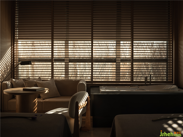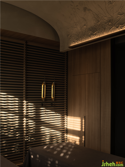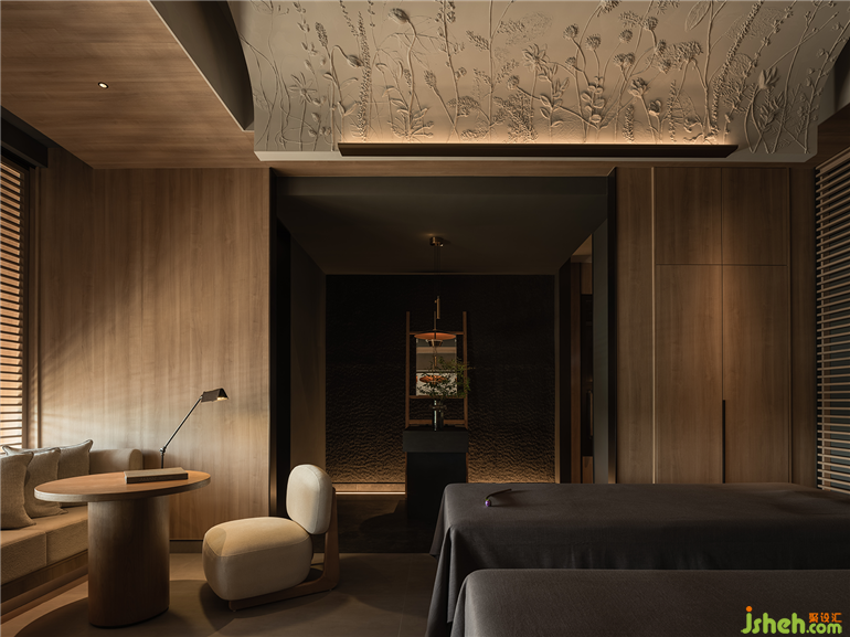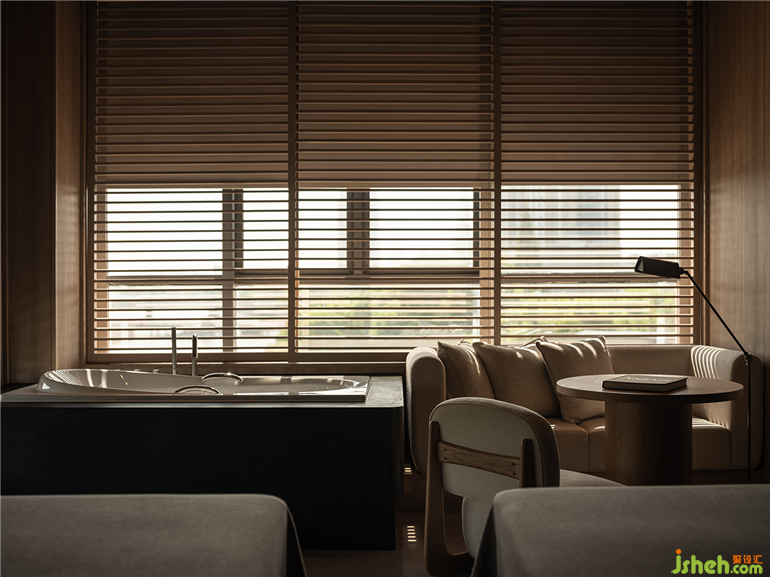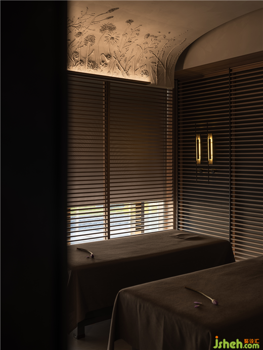 陽(yáng)光掠過(guò)格柵,織就光陰,滌蕩塵囂。和子SPA會(huì)館設(shè)計(jì)師摒棄繁飾,用最質(zhì)樸的光影,塑一室靜謐,享身心輕松,憐時(shí)光流逝。