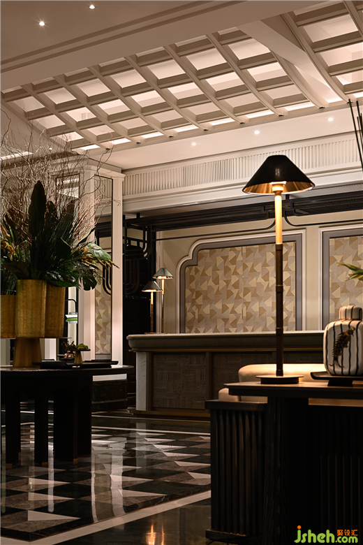 微微透光的波浪穹頂,反射著光線變化,延長了大廳獨(dú)特的室內(nèi)之旅,創(chuàng)造出寬敞明亮的氛圍。拱形結(jié)構(gòu)與木材和大理石相得益彰,運(yùn)用南洋風(fēng)格的獨(dú)特顏色,交織著綠色、大地色、金色、黑色交織在一起。通過顏色、質(zhì)感和線條的融合,構(gòu)建地域文化與藝術(shù)的和諧,呈現(xiàn)出獨(dú)特的風(fēng)格和宏偉氣勢。