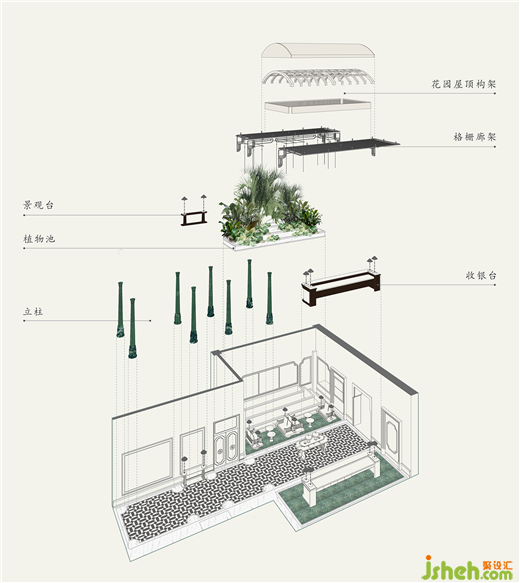 在各種不同紋理的各種裝飾圖案的突出下,半環(huán)繞式的卡座處融入了由格柵圍合的空間。夜幕降臨,無數(shù)的燈光照亮了昏暗的空間,夢幻般的異國風(fēng)情在每一個(gè)角落展現(xiàn)出來。