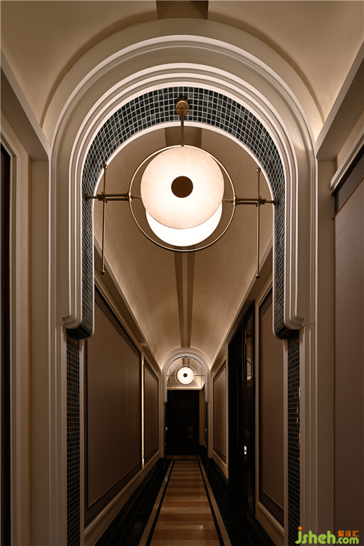 弧形拱門賦予了通向包間的道路超強(qiáng)的節(jié)奏感,還帶有濃郁的古典風(fēng)情??臻g像舞臺(tái)一樣的場(chǎng)景,但從不平庸,但卻舒適而令人放心。