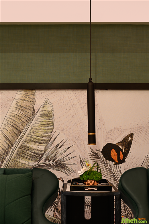 柔和的奶油色和米色配色與充滿活力和引人注目的顏色和紋理材料相輔相成,如木材、黃銅和大理石,花鳥墻紙?jiān)俅我霟釒е脖缓蛣?dòng)物,增強(qiáng)了SPA包間與足浴包間的氛圍,為身心創(chuàng)造了寧?kù)o舒適的氛圍。