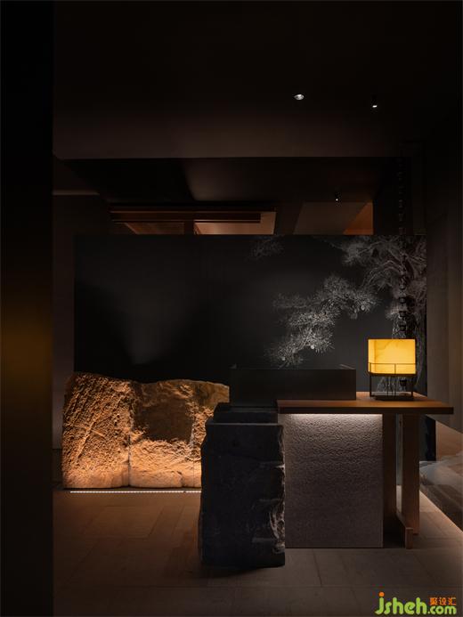 凡此種種,講究主體與客體之間反差帶來的美,如“煙生遙岸隱,月落半崖陰”,詩境中彼岸與明月何所見,只因煙生、涯陰。設(shè)計(jì)師運(yùn)用光影手法,讓感性的美走進(jìn)深邃的黑,空寂而深遠(yuǎn),如同在水墨中留以隱秘和留白,以表幽玄意境。