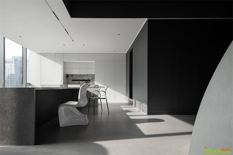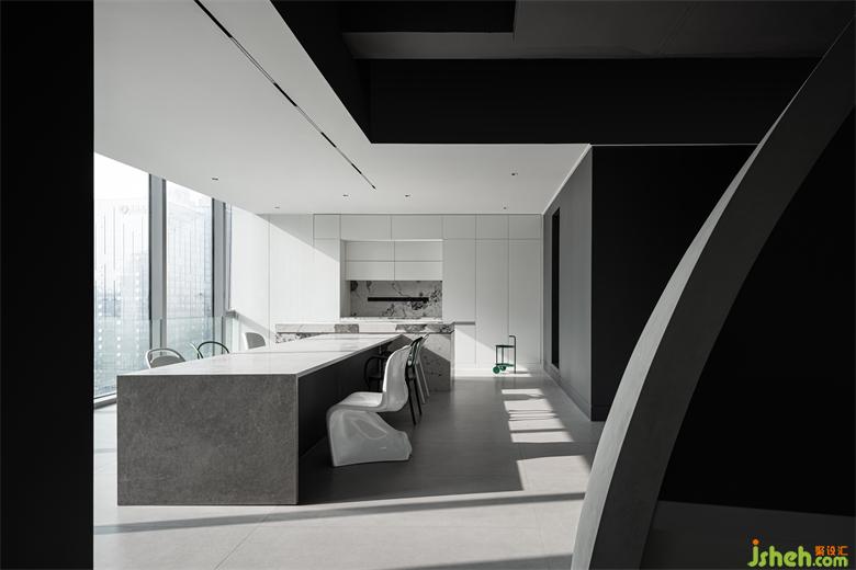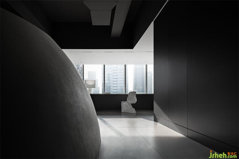沙龍區(qū)的硬朗直線與公共辦公區(qū)域的優(yōu)雅弧線相結(jié)合,剛?cè)嵯酀?,展現(xiàn)出幾何的藝術美感,辦公室設計使空間富于變化,實現(xiàn)了一種微妙的平衡。