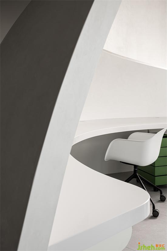 半開放的兩個圓弧形空間作為員工日常的辦公區(qū)域,彼此之間互相隔開,使得不同工位之間互不影響,保障員工安心辦公。