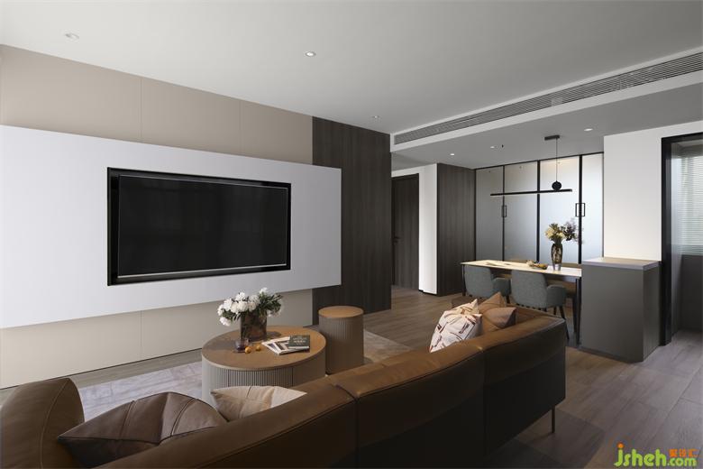 餐廳與客衛(wèi)之間設有隱形門,關閉不用時,展示出整面完整的墻面,成都新綠季節(jié)家裝設計讓整個空間看起來更加和諧統(tǒng)一。