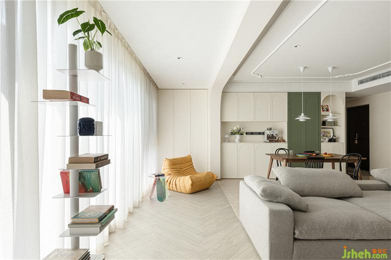 陽臺處的采光充裕,溫雅的白色紗簾,輕盈飄逸,溫婉動人。慵懶自在地窩在懶人沙發(fā),沖上一杯喜愛的飲品,隨手取一本書架上的書,就能度過一整個閑暇愜意的午后。