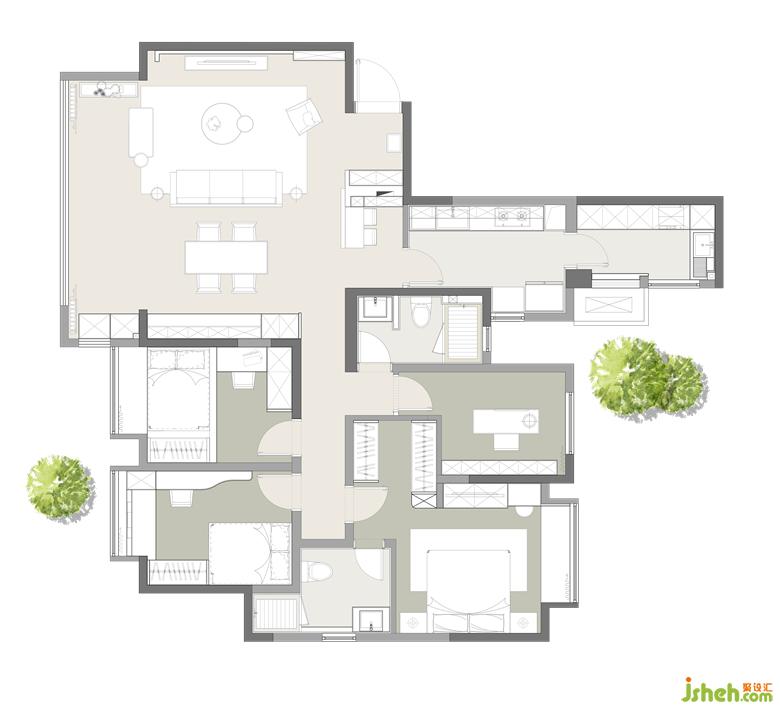 客餐廳相連的布局,開闊明朗,具備良好的通風與采光條件,營造出開放自由的環(huán)境。整體空間以中性色調為主,簡潔又不失溫馨,頗具柔雅氣質。