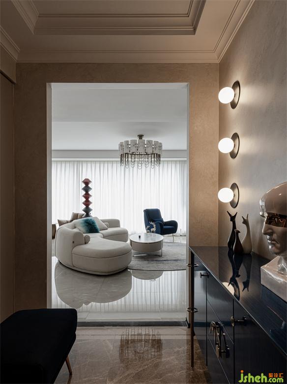入戶玄關(guān)處巧妙運(yùn)用燈光,通過墻壁氛圍燈暈染的光線來營造空間的明暗層次,家裝設(shè)計(jì)打造一種溫馨的情調(diào)。柜體燈光除了突顯柜子內(nèi)的物品以外,呈現(xiàn)出獨(dú)特的光影效果,在視覺上擴(kuò)展了柜子的空間感。