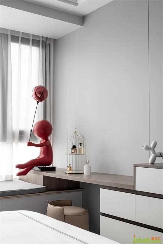 兒子房在極簡的格調(diào)之下,又充滿著想象力與趣味性。內(nèi)斂穩(wěn)重的灰色,家裝設(shè)計(jì)打造出靜謐安然的休憩環(huán)境。俏皮的藝術(shù)掛畫與雕塑擺件讓整個(gè)空間都充盈著新鮮的活力。