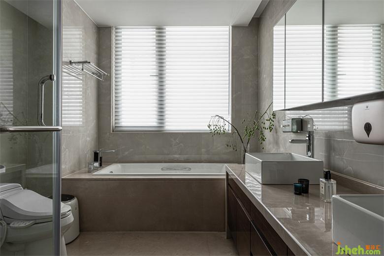 衛(wèi)生間簡約明亮,空間利用度高,洗漱區(qū)布局簡潔有序,家裝設(shè)計(jì)以透明玻璃門為界做了干濕分區(qū),衛(wèi)生清潔,有助于保持整體空間的干燥,利于使用。
