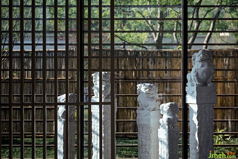 藝術(shù)家從無界的時空痕跡里捕捉靈感,設(shè)計師基于骨子里的東方人文基因,提取淬煉出對中式經(jīng)典美學的贊美與傳承。坡屋頂是中國傳統(tǒng)建筑的代表元素,尚石設(shè)計在這個空間里用建筑的手法打造了室內(nèi)水榭,以人文詩意的精神聯(lián)動室內(nèi)外,為空間賦予了更豐富的文化特性。鋁格柵裝置讓室內(nèi)外依然保持互動,呈現(xiàn)出自然通透的空間感。