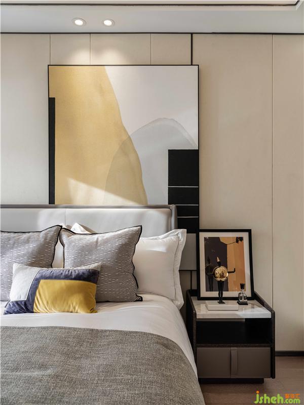 相對于其他空間來說,主臥去繁就簡的手筆更為明顯,以暖黃色為樂章,燈光為音符,在點、線、面之間聯(lián)動,來回穿梭,譜寫一曲溫暖、愜意的情歌。樣板房設(shè)計