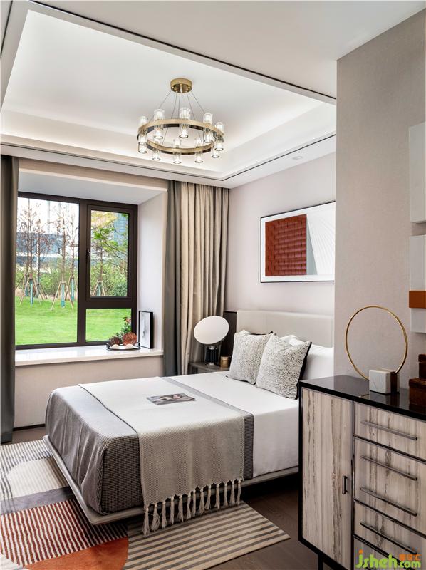 跳脫出整體優(yōu)雅的風(fēng)格,男孩房自然是靈動朝氣一些,藍(lán)白碰撞帶著時尚元素,大面積的窗讓光線隨意在房間有游走移動,讓空間無限生動了起來。樣板房設(shè)計