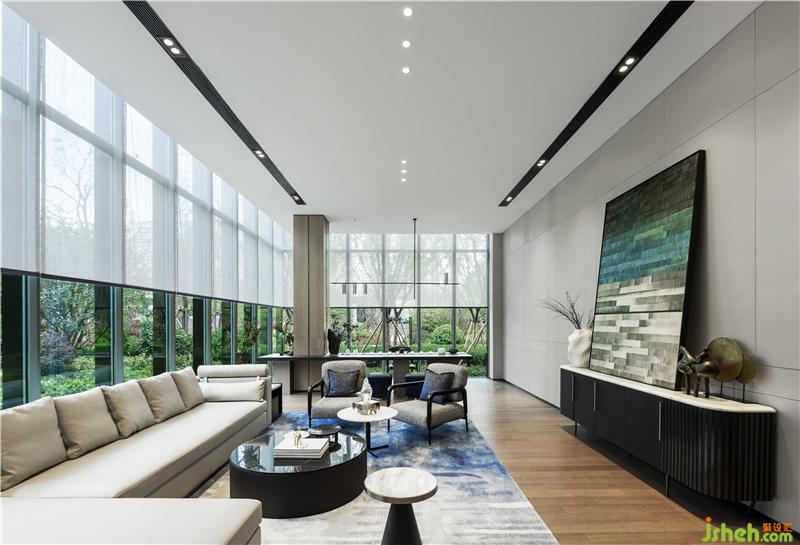 為呈現(xiàn)更開(kāi)闊的景觀視野,將室外風(fēng)景引入室內(nèi),選用玻璃幕墻做為室內(nèi)與室外的連接載體,在設(shè)計(jì)落地的過(guò)程中,其尺寸及形式亦經(jīng)過(guò)多次反復(fù)論證方才最終成型。