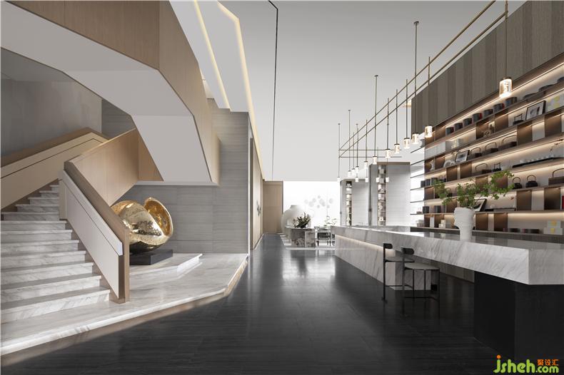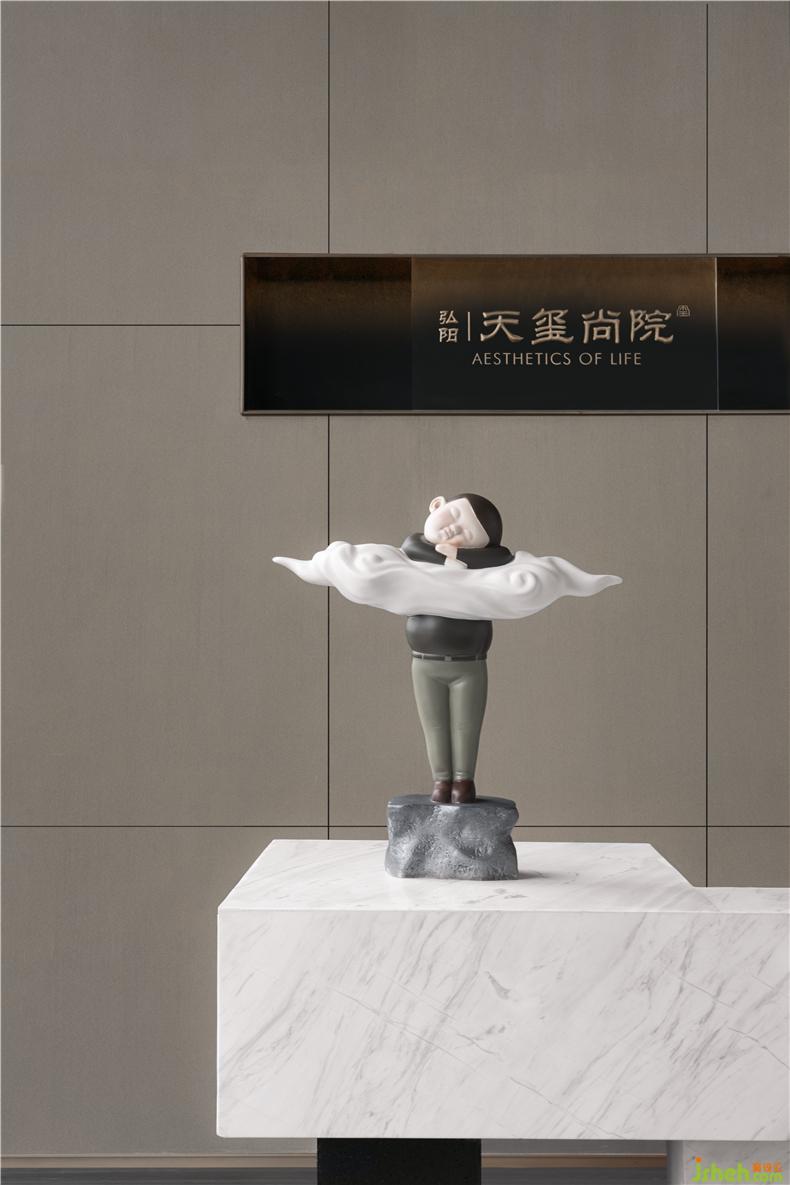 接待臺整體采用白色大理石,擺放的藝術(shù)裝置也頗有考究。室內(nèi)設(shè)計師藝術(shù)裝置《下一刻將會發(fā)生什么》視覺吸引的同時還能有自我思考的空間,增強用戶在空間內(nèi)的情感互動,帶來更多的傳播性和體驗性。